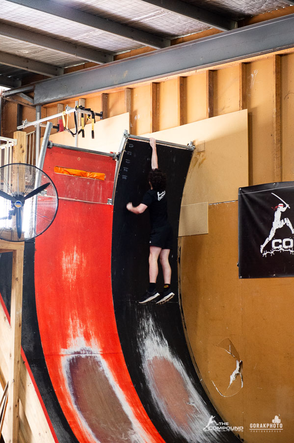 Almost everything that required boat loads of grip, forearm endurance and explosive power was thrown into the August AusNWT Ninja Warrior comp at The Compound.